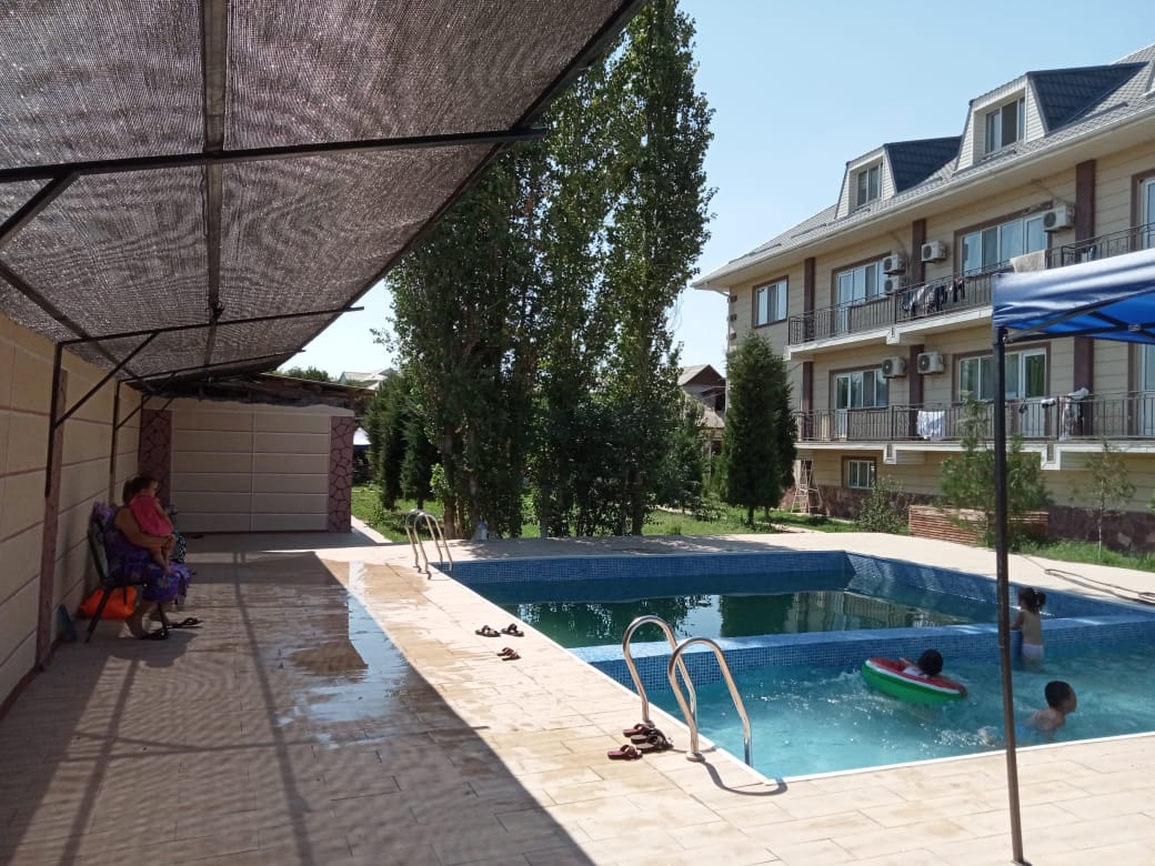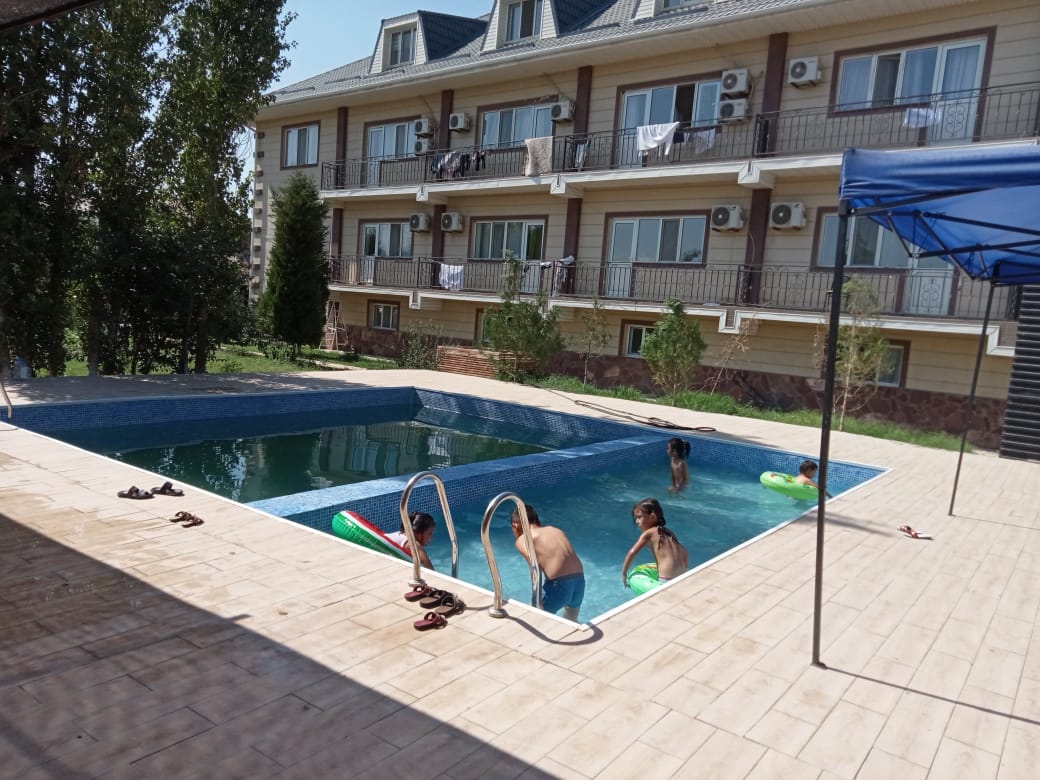 Озелененная территория на которой растут облагороженные ели и туи в перемежку с розами и плодовыми деревьями.Источник находится на территории санатория. Индивидуальный подход к каждому отдыхающему. Профессиональный медицинский персонал внимательно и вежливо обслужит всех отдыхающих санатория. Разнообразное диетическое меню приятно вас удивит. Обилие фруктов и овощей.Восточное гостеприимство. Для все желающих предоставляем организованные экскурсии на комфортабельных автобусах в Туркестан,а также обзорная экскурсия в Ташкент, Самарканд,для этого обязательно наличие загранпаспорта.